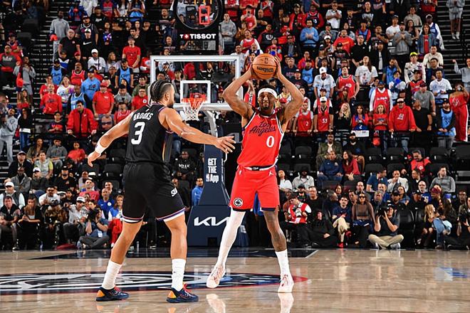 本場比賽中,快船的先發(fā)后場新援布拉德利-比爾(Bradley Beal)面對著自己的老東家的表現(xiàn)其實還是不錯的。比爾全場出場19分37秒,投籃9中4,三分線外4中2,罰球2中2,得到了12分3助攻1搶斷的數(shù)據(jù),還有1次失誤和1次犯規(guī),正負值為+4。比爾在進攻端的效率其實還算正常,也是通過各種方式拿下了不少分數(shù),而且也展現(xiàn)出了分享球方面的能力。比爾在防守端也能夠起到一定的作用,他在場上時球隊的整體局面也是值得肯定的。只是問題就在于,比爾的出場時間依然是受到了嚴格地限制,球隊教練組依然是選擇了掐點換人,再加上出手次數(shù)也不是太多,比爾確實是很難在這種情況下發(fā)揮出自己的全部實力。如果比爾能夠得到更多的出場時間,說不定快船的競爭力也會有明顯的提升。