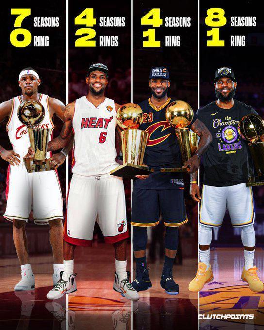 1、 騎士(第一期):7個(gè)賽季,0冠;2、熱火:4個(gè)賽季,2冠;3、騎士(第二期):4個(gè)賽季,1冠;4、湖人:8個(gè)賽季,1冠。